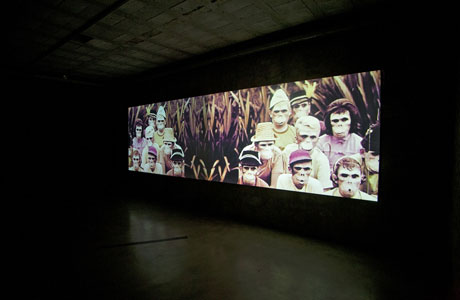 Dupla projecção vídeo 1920/1080 (em espelho), Loop 5'30 x inf., Quicktime H264 Conceito/montagem imagem/som: Sandro Aguilar Apontamentos musicais: Black Bombaim Manipulação de imagens e sons dos filmes ONE GOT FAT de Dale Jennings (1963) e IMAGING THE HIDDEN WORLD-THE LIGHT MOCROSCOPE de Bruce Russell (1984) Manipulação som do filme EXPERIMENTS IN THE REVIVAL OF ORGANISMS de D.I. Yashin (1940) |