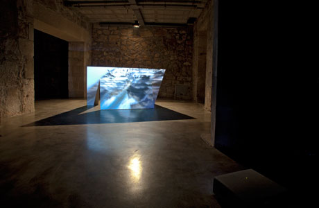 Nem todos os ecrãs recebem as imagens de uma forma passiva. Alguns resistem, opondo-se ao papel de recetor de imagens. Este tipo de ecrãs tenta afirmar-se como uma forma autónoma ascendendo a um estatuto de objeto com um fim em si, tal como a pintura e a escultura, emanando uma imagem própria. Estes ecrãs reagem assim às projeções, num conflito permanente entre a sua auto-suficiência e aquilo a que foram destinados. No entanto, algumas projeções, munidas de imagens com movimentos contínuos e repetitivos, conseguem penetrar na barreira criada pelos ecrãs. A persistência mole das imagens pode mesmo corromper a solidez da matéria, num processo de erosão que consome as certezas físicas. Os ecrãs sólidos entram renitentes no limbo incerto da perceção, um espaço de conflito entre a imagem própria, autónoma, e a imagem de superfície, imposta, projetada. Em Wall Against the Sea apresentam-se várias intersecções entre matéria e imagem, férteis em ressonâncias que promovem incertezas e instabilidades na matéria e sua perceção. |